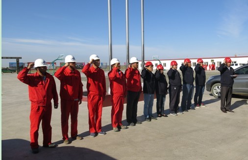 在慶祝中國共產黨成立92周年之際,新疆昌源準東煤化工有限公司了舉辦了一系列慶祝七一建黨節的活動。七月一日上午9:30分,新疆昌源準東煤化工有限公司木壘縣50萬噸/年煤焦油輕質化、100萬噸/甲醇及配套項目工地現場全體員工在新疆昌源準東煤化工有限公司常務副總經理寅生同志的帶領下,在項目工地現場舉行了升旗儀式。
